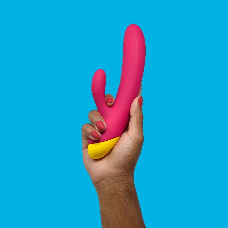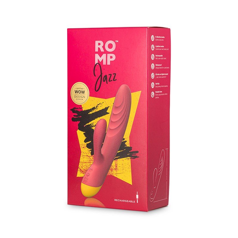 ROMP Jazz es un vibrador doble que combina la estimulación del punto G y el clítoris. Posee 6 potentes niveles de intensidad y 4 diferentes ritmos para que puedas mezclar y encontrar el que más se acomode a ti. Está hecho en silicona, material seguro para el cuerpo, y es super suave al tacto.